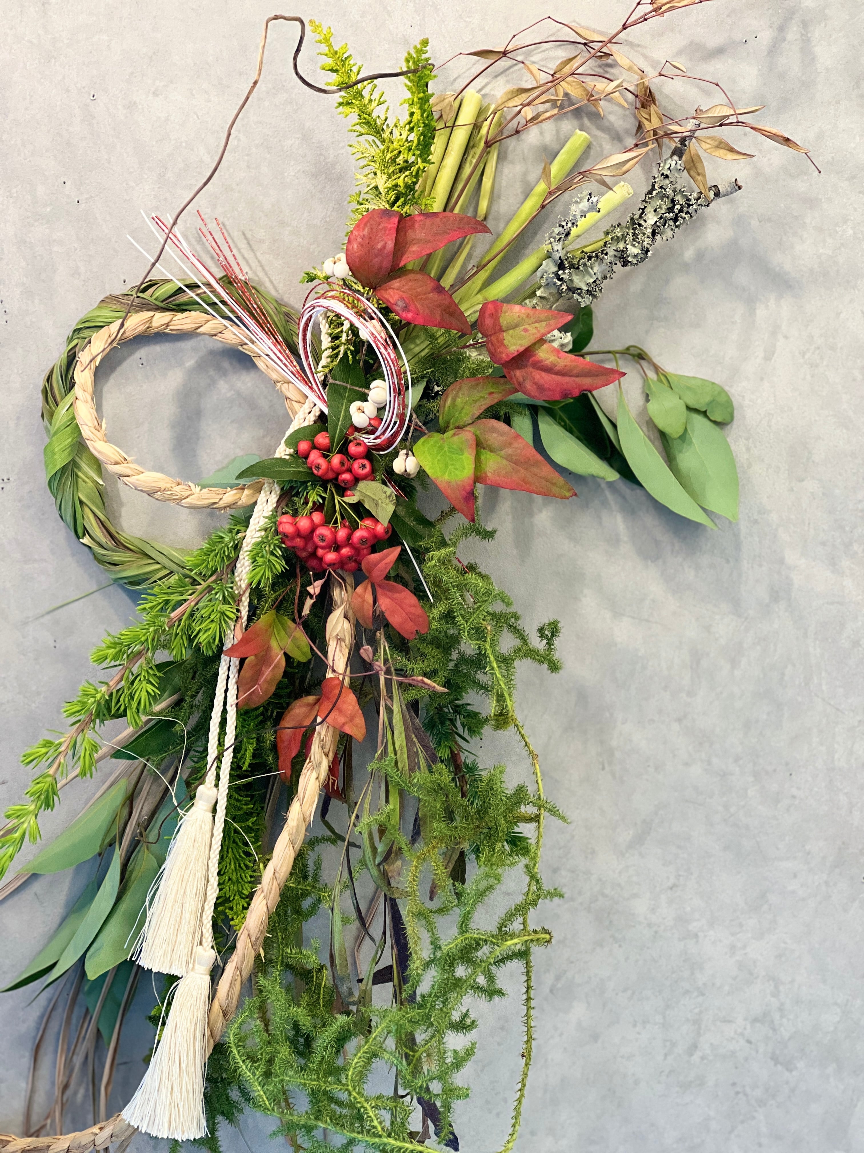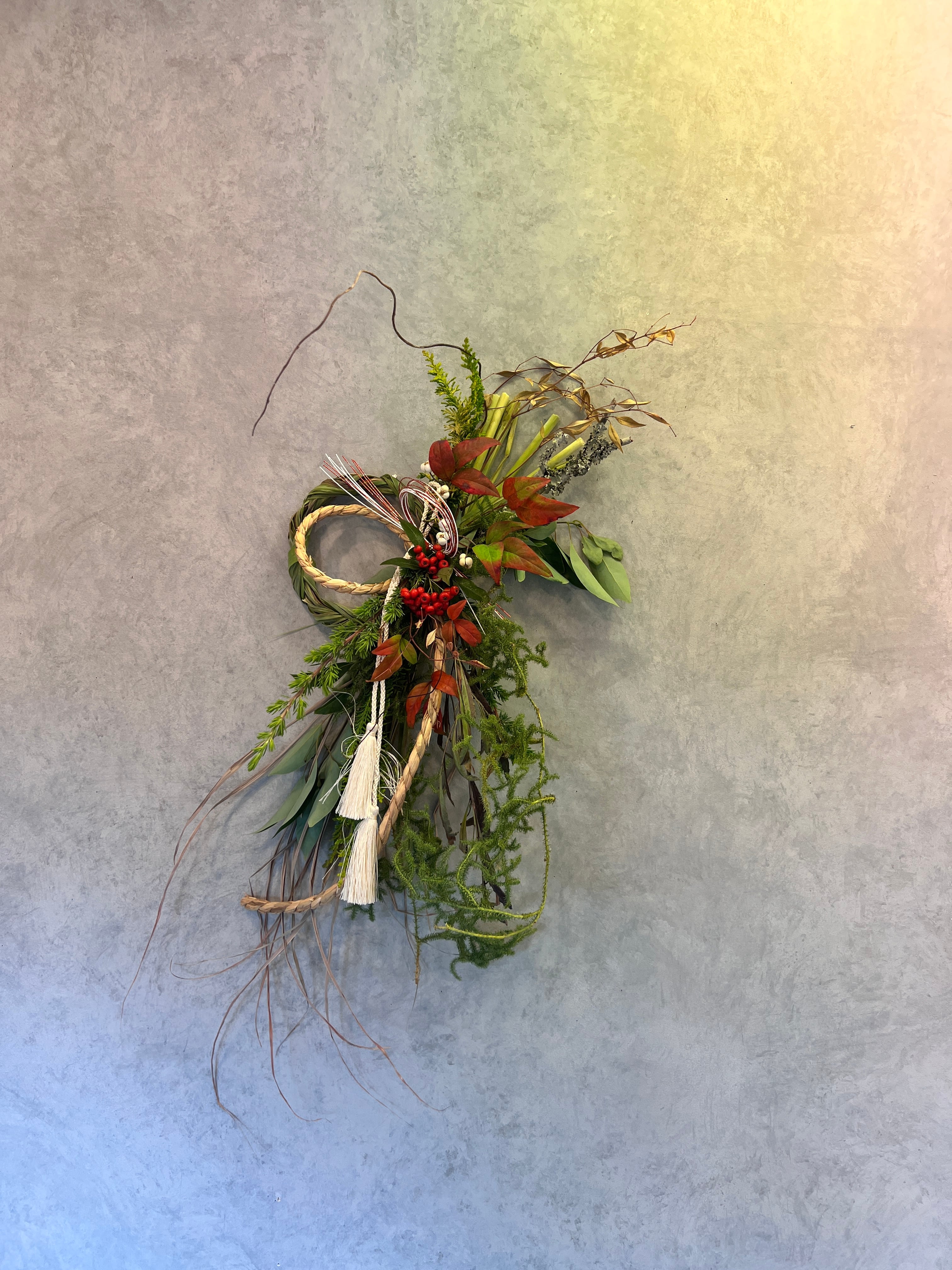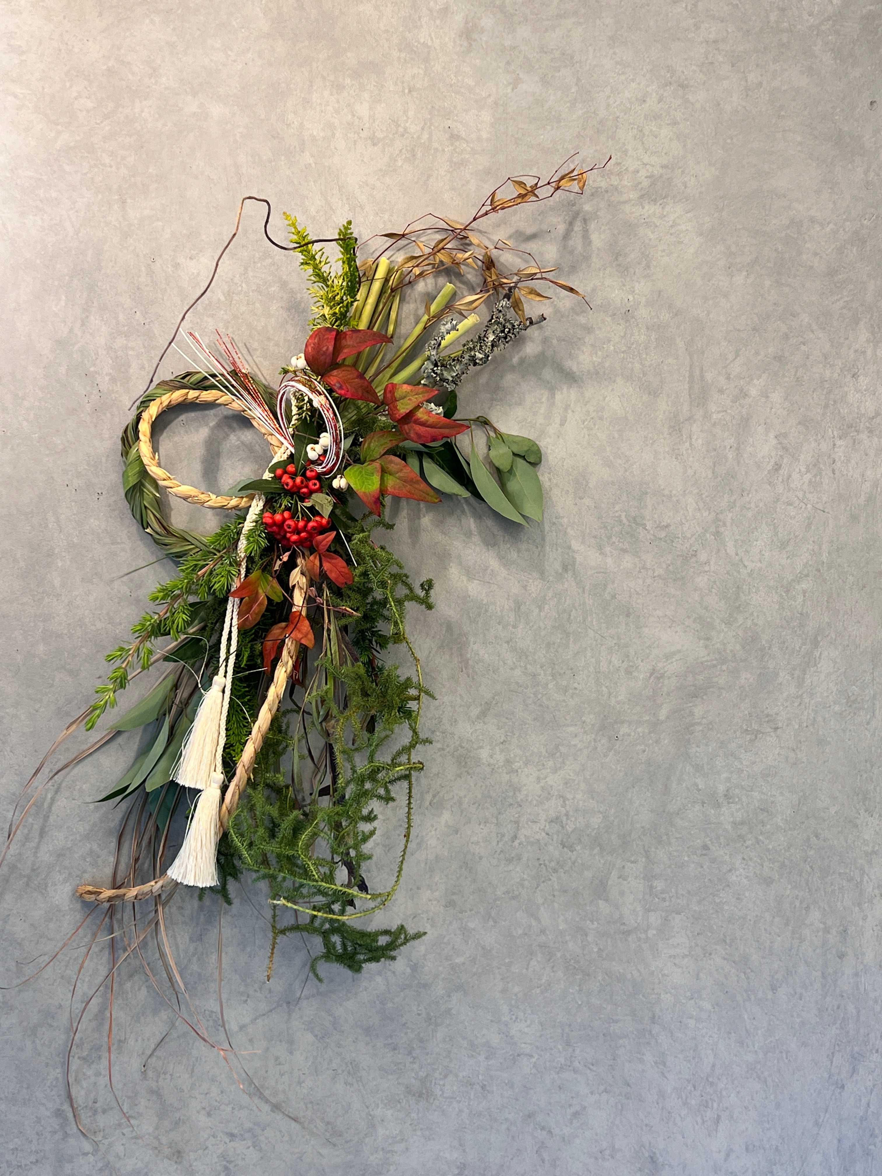 ヒカゲカズラ、南天、松などお正月にかかせないお花も使用しております