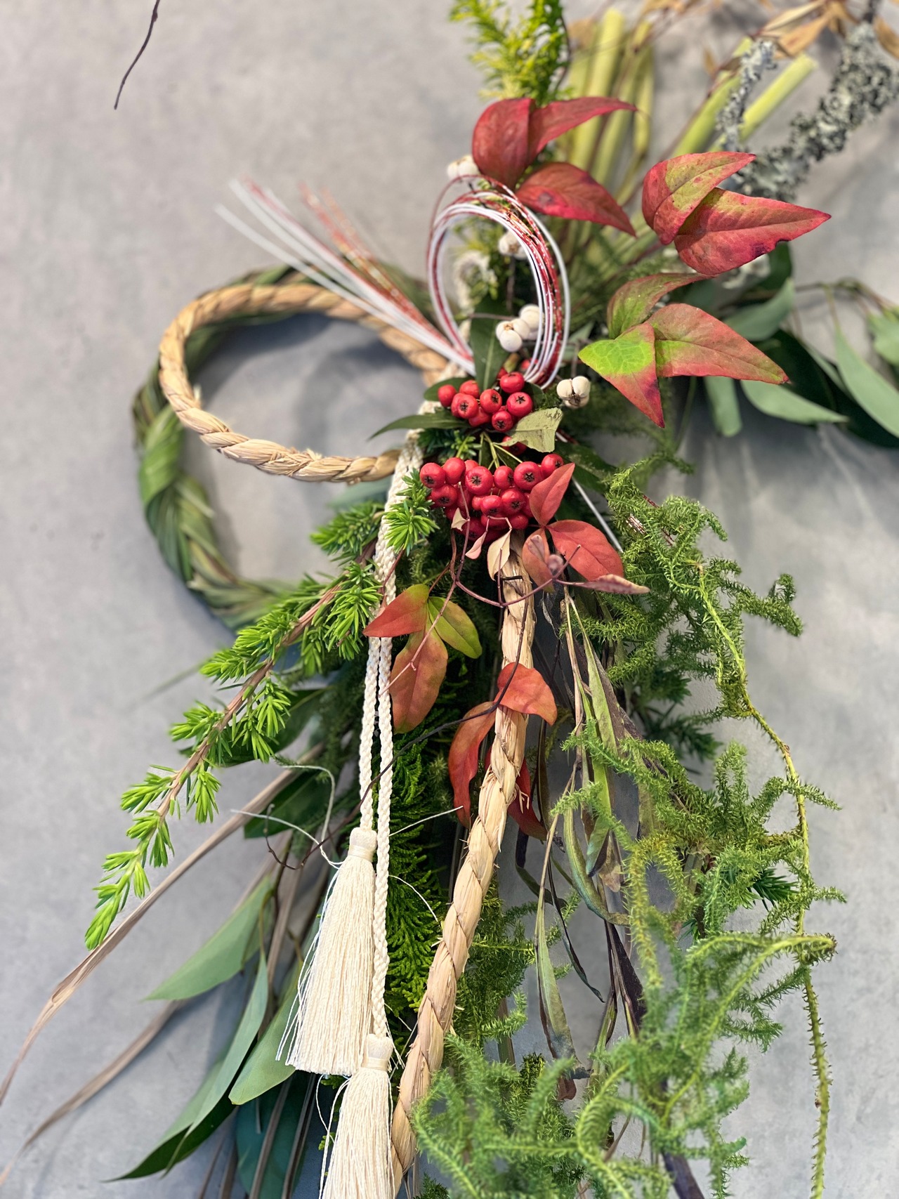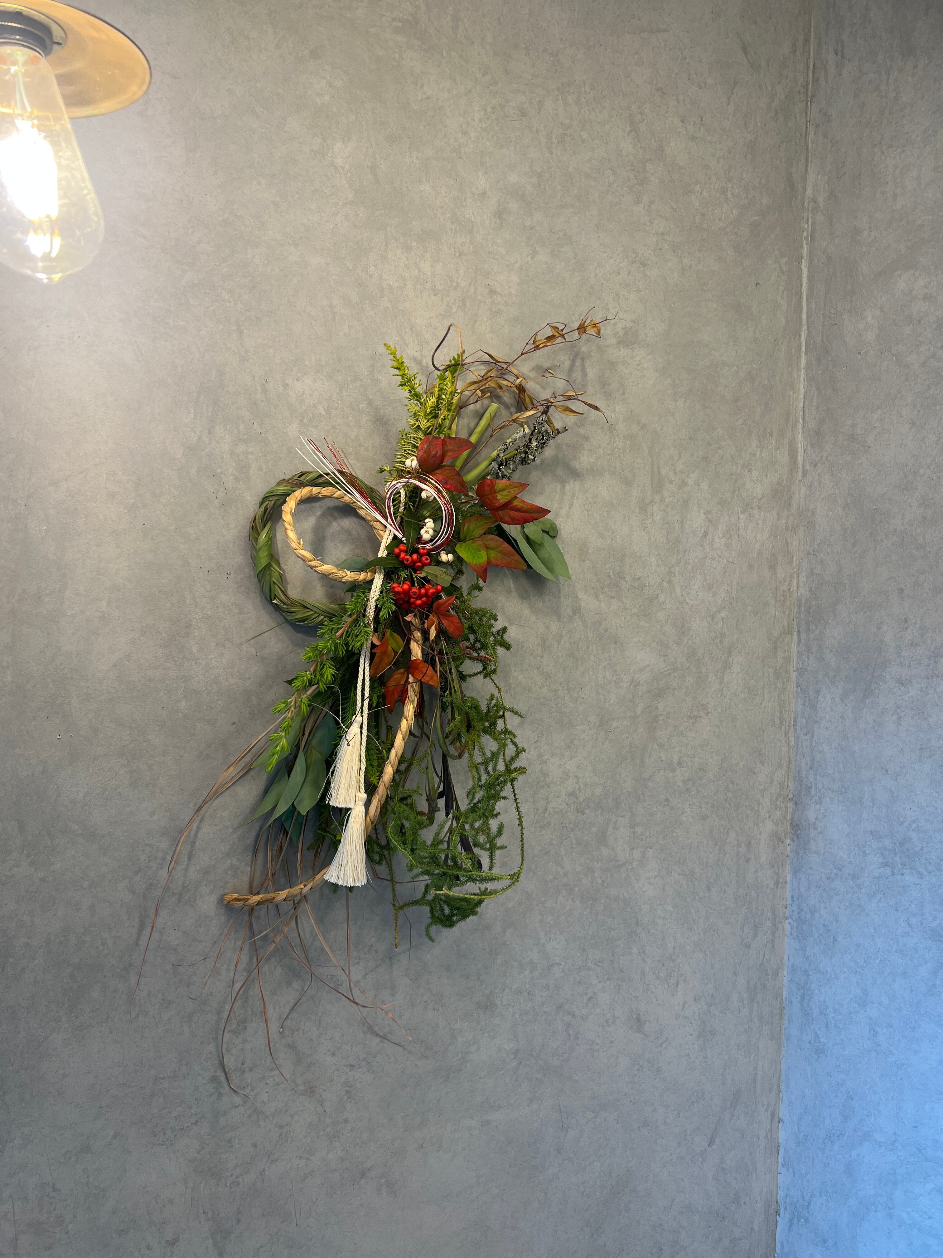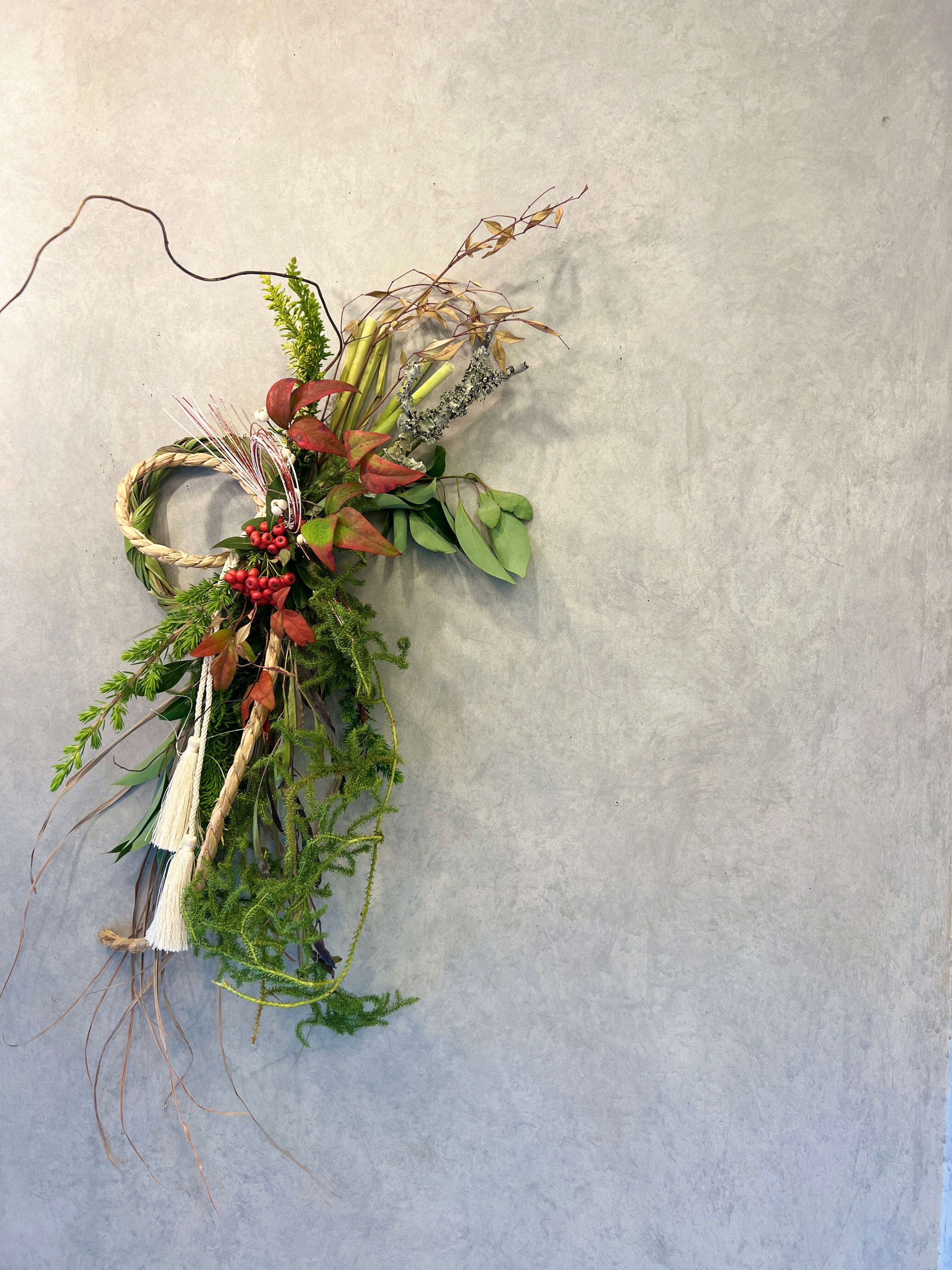 ヒカゲカズラ、南天、松などお正月にかかせないお花も使用しております